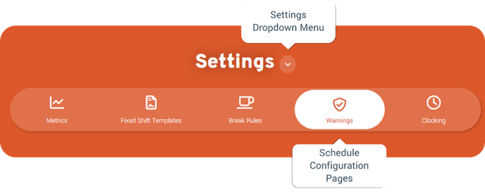 - Select the relevant Schedule Settings page to update or add rules and warnings